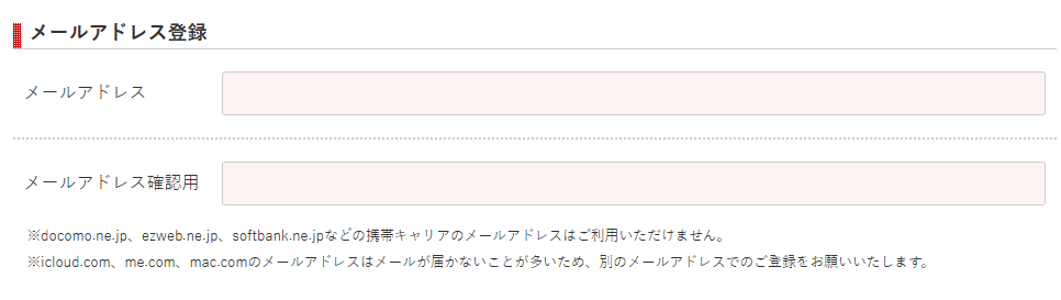- メールアドレスを入力